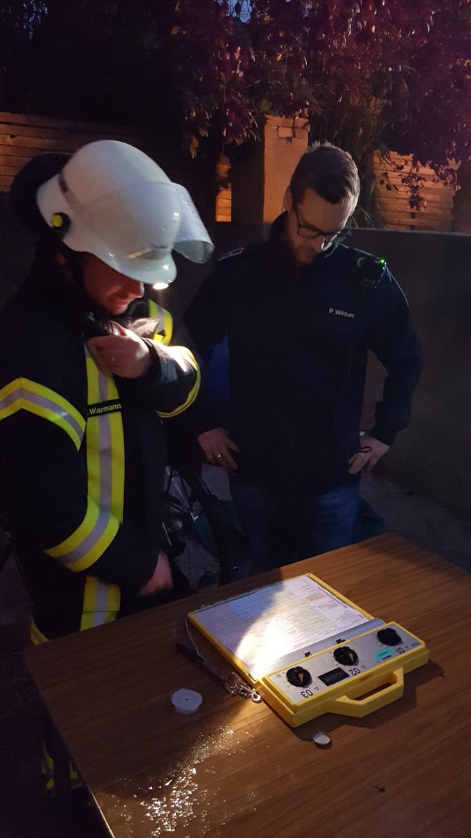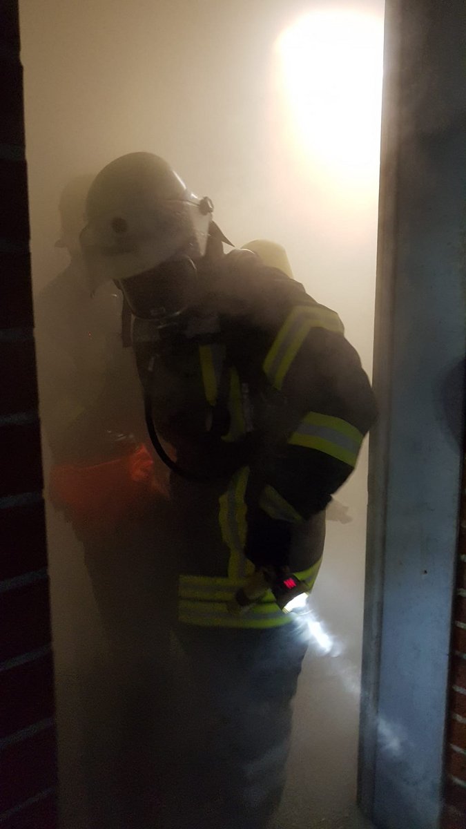 Da auch das Fahren mit Blaulicht und Sirene geübt sein will, haben wir die fiktive Einsatzstelle unter Nutzung der sogenannten Sonder- und Wegerechte angefahren. Sofort wurde die Menschenrettung unter schwerem Atemschutz eingeleitet, parallel wurden im Außenbereich viele weitere Maßnahmen durchgeführt. Hierzu gehörte die Bereitstellung von rettungsdienstlichen Material, die Brandbekämpfung, sowie das Herstellen eines zweiten Rettungsweges für die im Innenbereich eingesetzten Trupps.