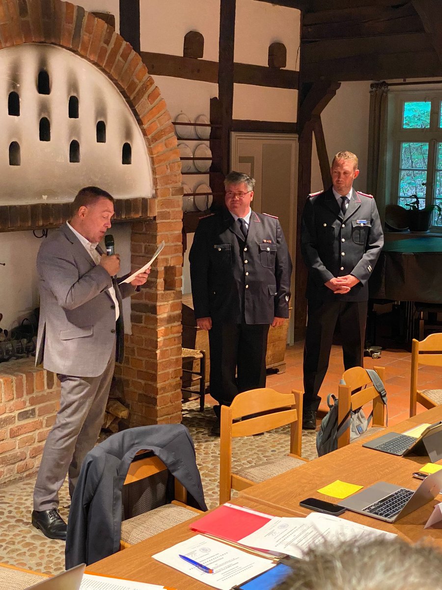 In der Gemeindekommandositzung am 22. März wurden Oliver Hermann (Gemeindebrandmeister) und Simon von Hörsten (stellv. Gemeindebrandmeister) jeweils einstimmig in ihren Ämtern bestätigt. Gestern, am 29.06.2023 nahm Bürgermeister Dirk Oelmann für weitere 6 Jahre die Ernennung in das Ehrenbeamtenverhältnis vor.