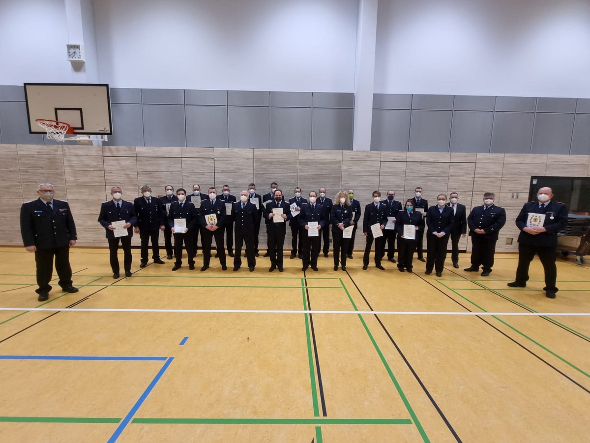 Im Anschluss an die Wahl wurden noch viele Mitglieder der Ortswehr für ihre Tätigkeit geehrt und befördert. Aufgrund der entfallenen Sitzungen in den letzten zwei Jahren standen hier mehr Beförderungen und Ehrungen als sonst üblich an. Eine namentliche Nennung entfällt deswegen an dieser Stelle.