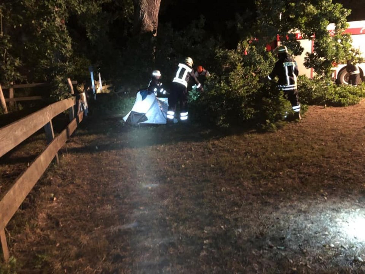 Am 12.08.2020 wurden die freiwillige Feuerwehren Winsen (Aller) um 02.08 Uhr auf einen Campingplatz alarmiert. Ein Ast war trotz Windstille von einem Baum abgebrochen und auf ein Zelt gestürzt. Da zunächst von verletzten Personen auszugehen war, wurde ebenfalls ein Rettungswagen alarmiert.