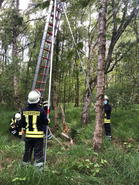 Hilfreich war, dass eine Begleitpersonen sich deutlich sichtbar an der Straße postierte, so dass die Fahrzeuge den Betroffenen schnell auffinden konnten. Der Fallschirmspringer konnte mittels einer Leiter unverletzt zu Boden gebracht werden. Nachdem auch der Fallschirm aus dem Baum befreit war, konnten alle Fahrzeuge wieder einrücken.