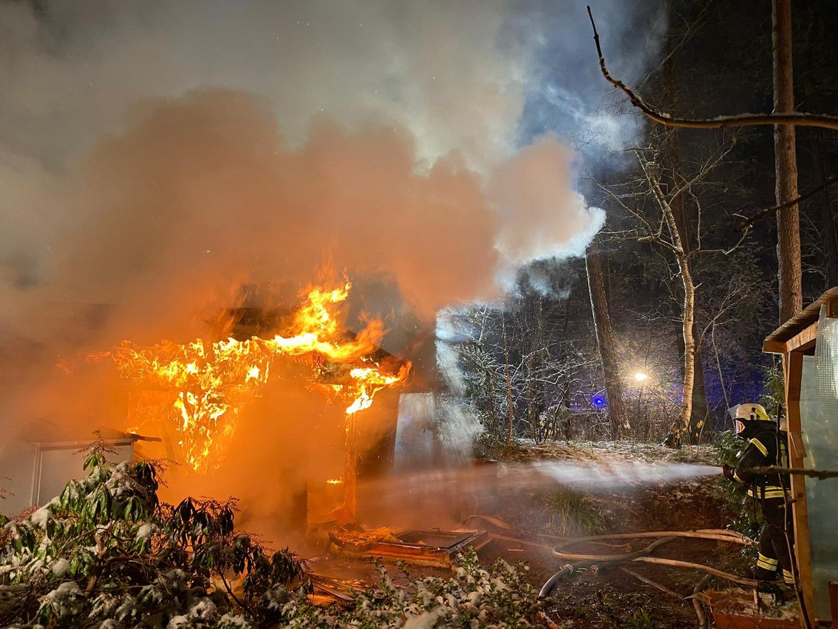 Ein Wochenendhaus stand in Brand, es gab zwei verletzte Bewohner, die sich bereits selbst ins Freie gerettet hatten. Während einige Feuerwehrkräfte die Brandbekämpfung aufnahmen, wurden die Verletzten durch Kräfte der Feuerwehr betreut, bis der Rettungsdienst vor Ort war und die weitere medizinische Versorgung übernahm.